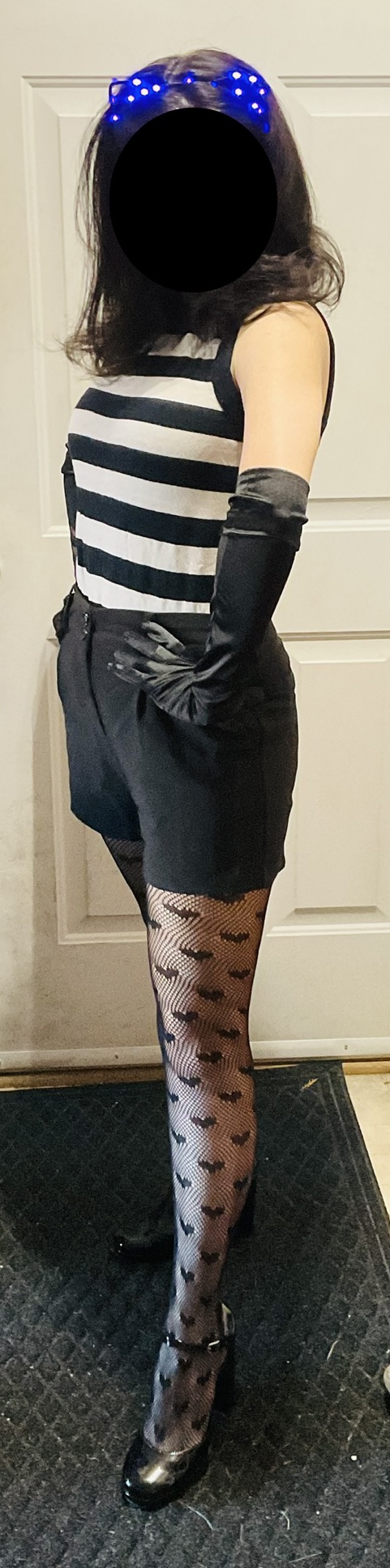 - Black shorts or mini skirt – denim, pleather, whatever allows you to move comfortably and swiftly like a true cat burglar.