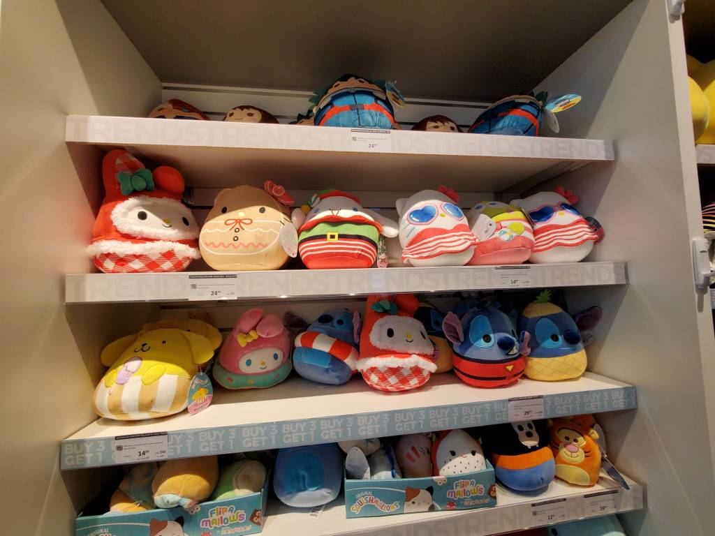 Showcase still has the typical Hello Kitty snack boxes, keychains, and randomized figurines, but during my visit, they had already stocked on the Hello Kitty Holiday Squishmallows.
